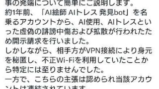 エッヂ 絵師が開示請求→VPNで相手逃亡 開示に失敗してしまう
