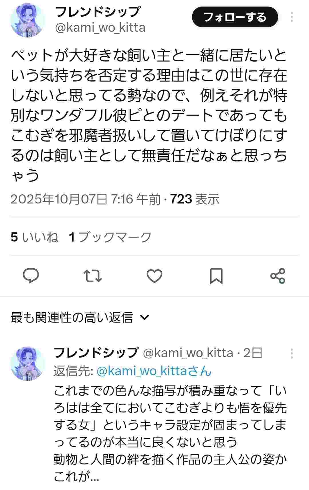 デートする時にペットを他人に預けたせいで叩かれてる模様