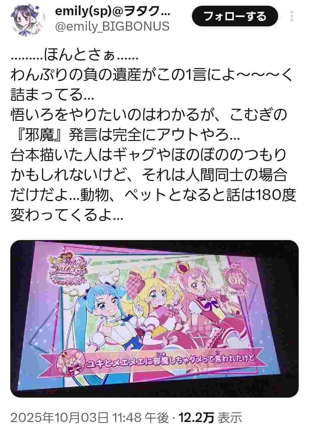 プリキュアオタクって人間関係希薄過ぎて場面ごとの距離感とか分からんのやろうな