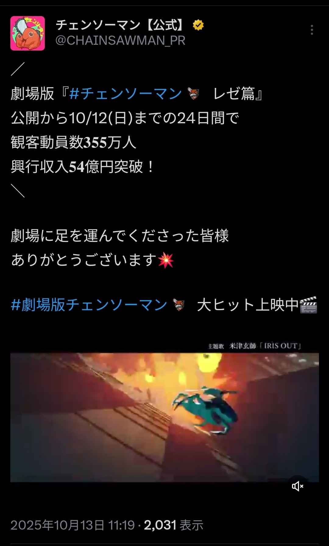 - https://x.com/CHAINSAWMAN_PR/status/1977559819591827864?t=Ns3812kL2B1DRi-YyROlLA&s=19