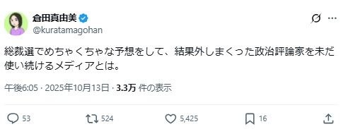 人気漫画家が疑問呈す、総裁選の予想「外しまくった政治評論家を未だ使い続けるメディアとは」