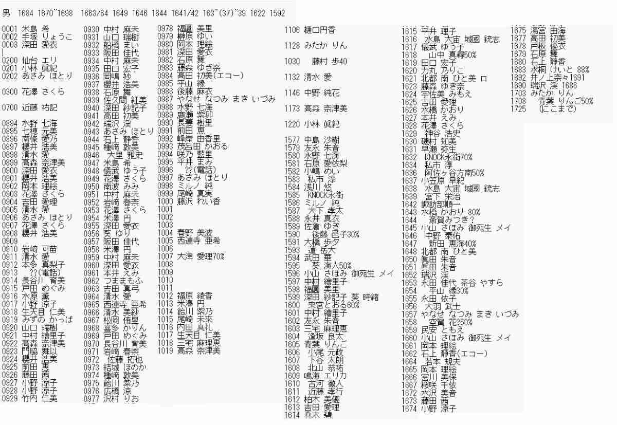 - Takaneの番号リスト