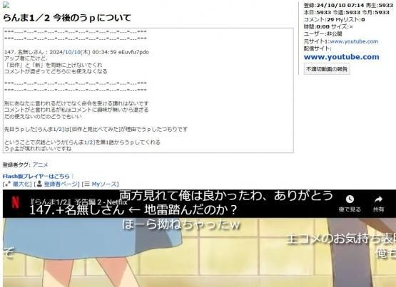 - こういう違法アップロードサイトで見てるのなんて昔からそういうとこで見る癖付いちゃった年寄りかコメントないと見れないとか言っちゃうニコ動世代くらいやろ