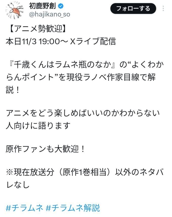 今期覇権アニメ『千歳くんはラムネ瓶の中』、異例の「"楽しみ方"解説」が行われるwww