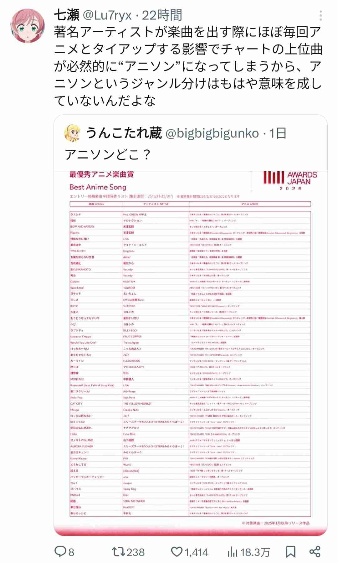 アーティスト側もJPOPカテゴリだとランクインできないからアニソンカテゴリでランクイン狙いに行けるし