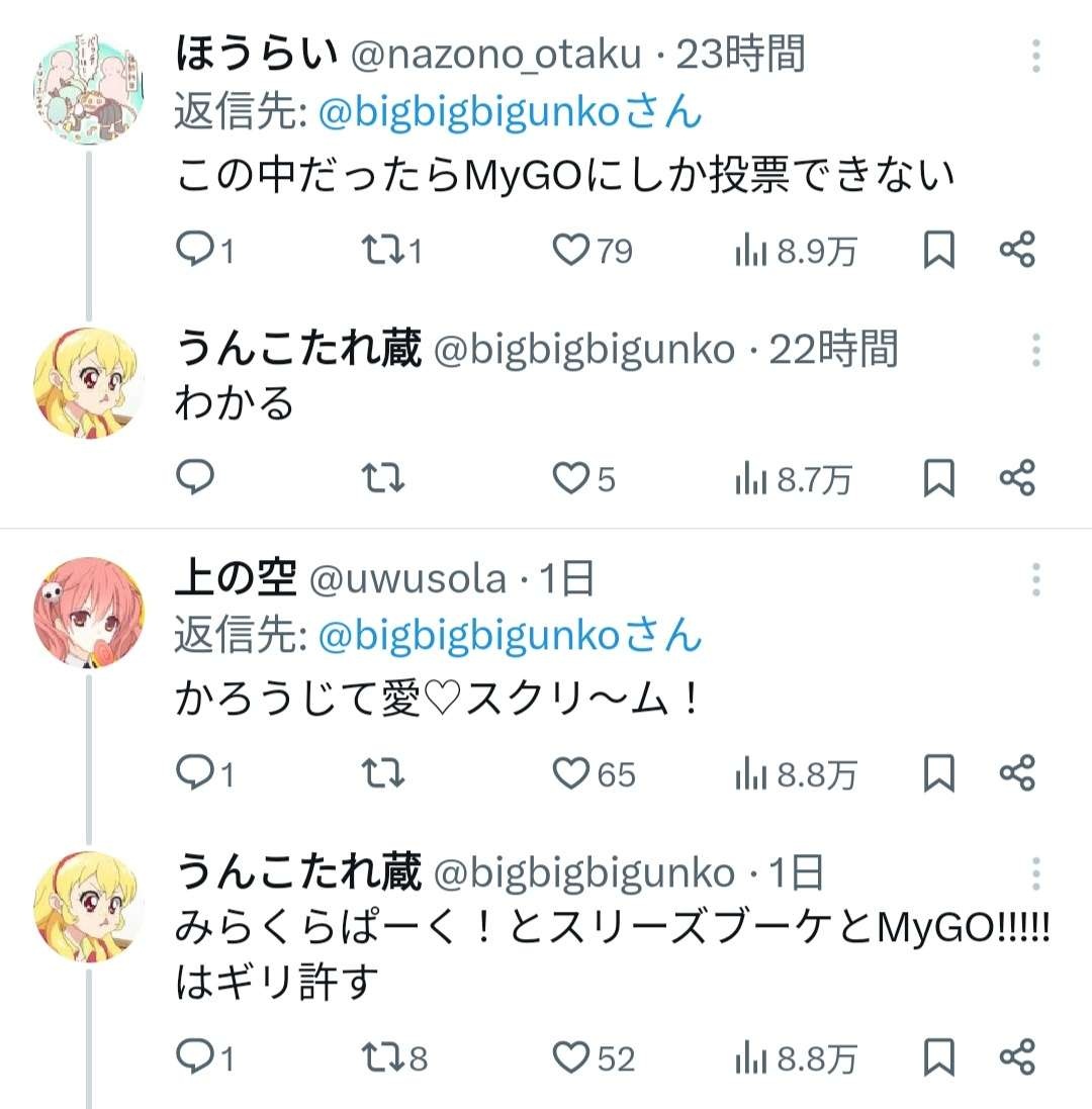 良い曲ランクインしてるじゃねえか!ラブライブとバンドリだろ?