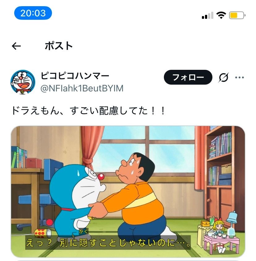 それはどうでもええけどしずかちゃんのスカートめくりは復活させてくれ