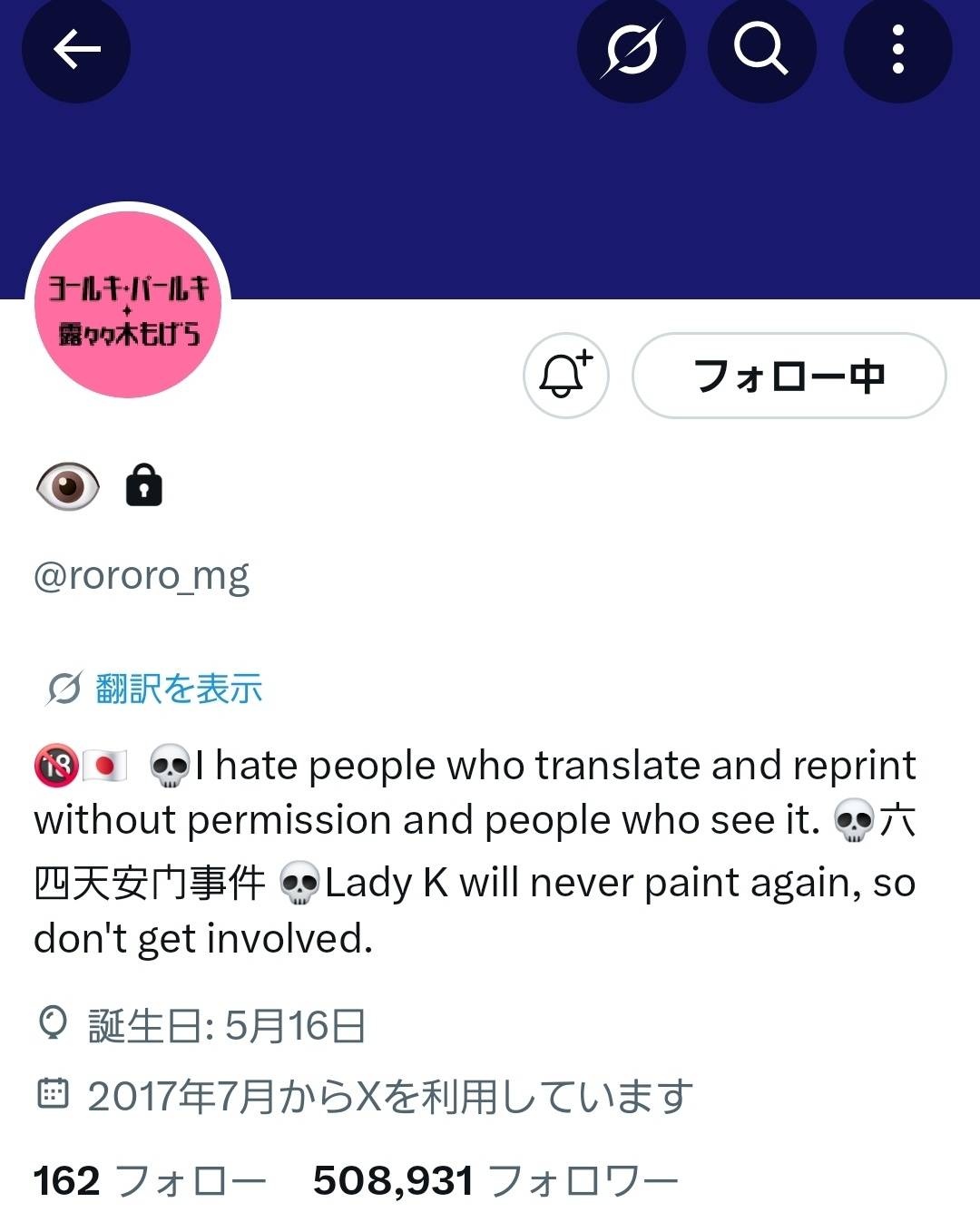- 活動情報出してるSNSで思想だしちゃ駄目だよ