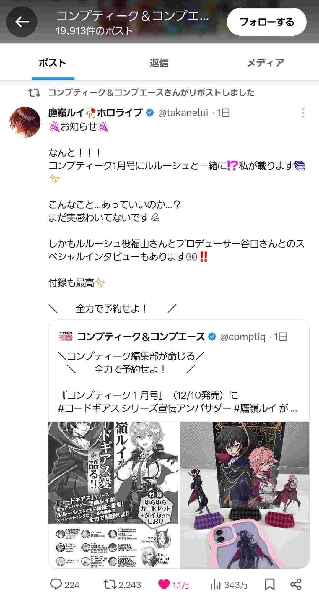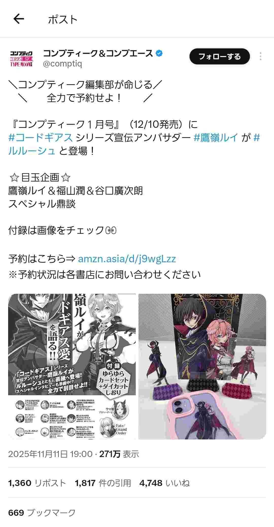 コンプティーク1月号にルルーシュと一緒に⁉�私が載ります📚✨