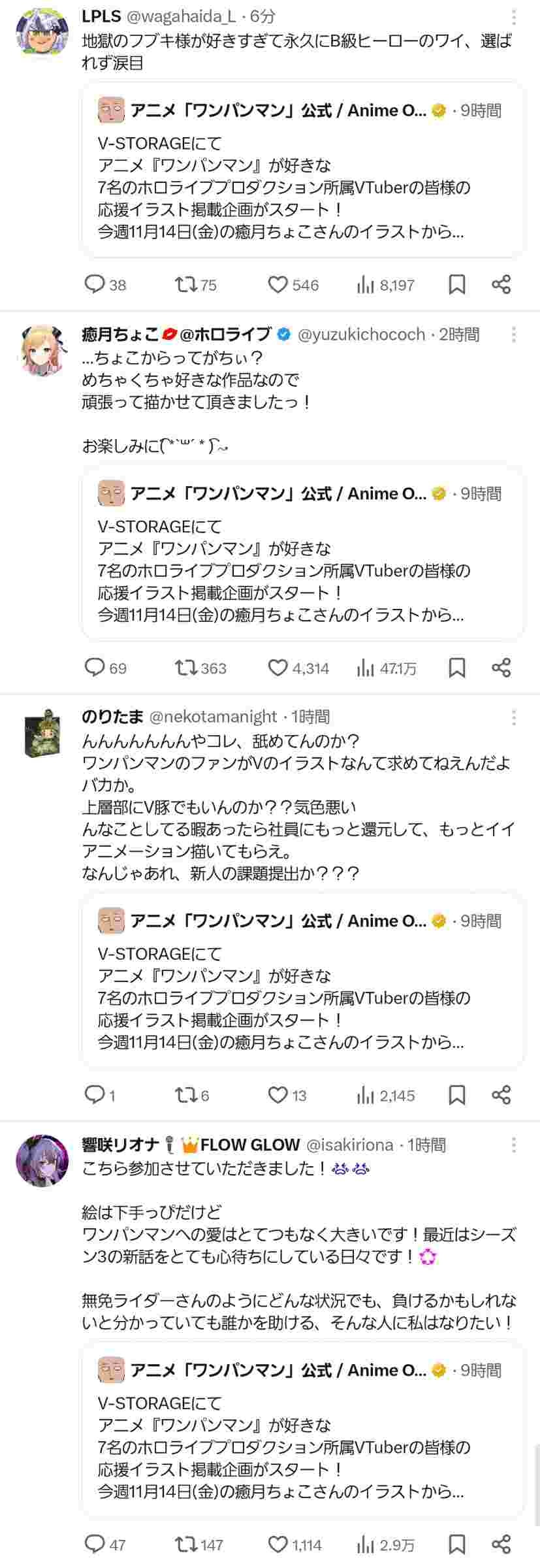 ワンパンマンとかいうパクリアニメ、Vtuberとコラボして炎上中