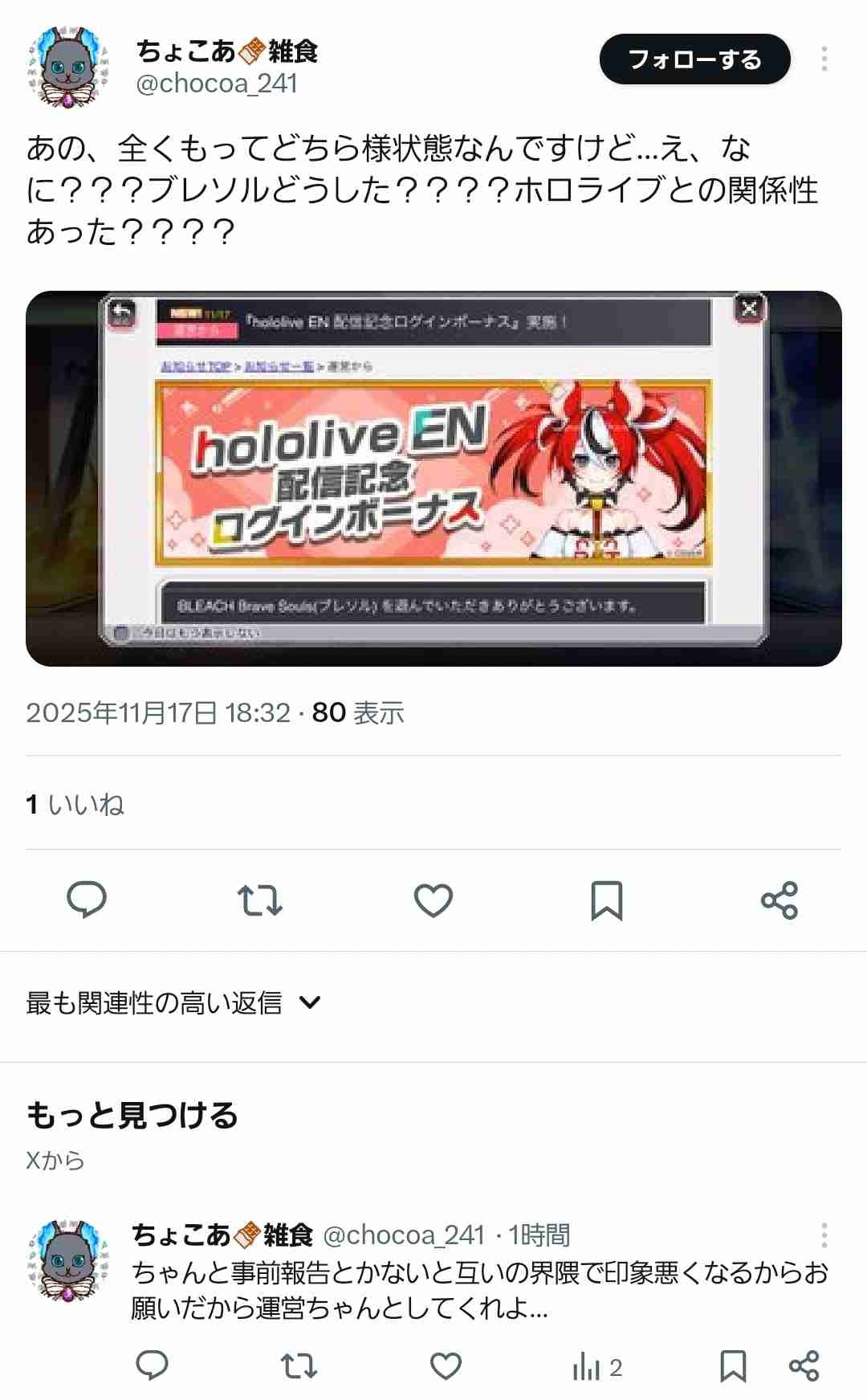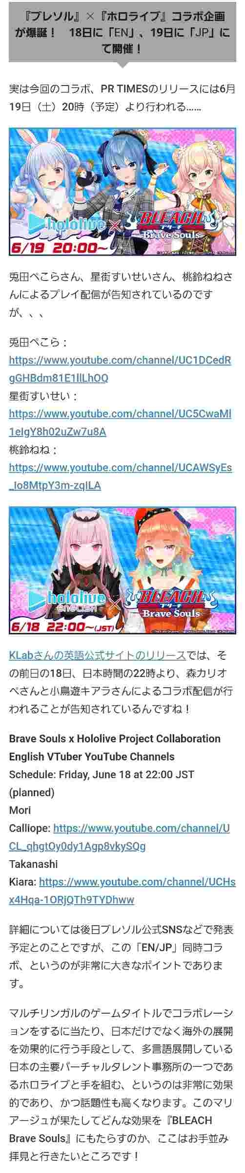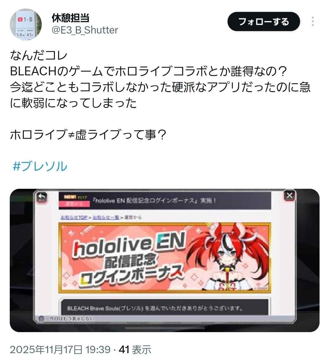 BLEACHのソシャゲ、ホロライブとコラボ開始でBLEACHファン咽び泣くwww