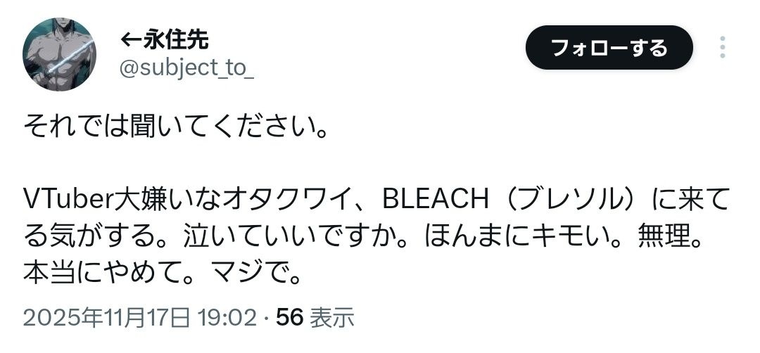 だとしても受けたのはBLEACH側じゃん - 11 : 2025/11/17(月) 19:55:50.015 ID:TsSh8/DcQ