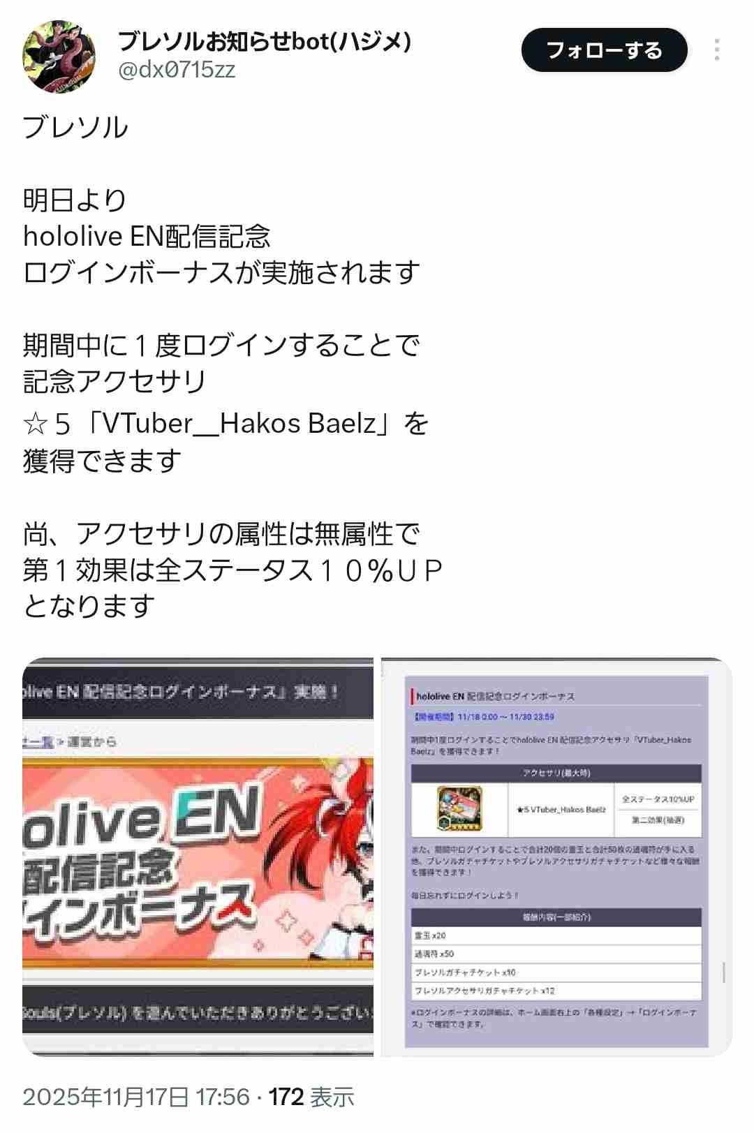 - よくわからんが配信記念ログボってことはコラボじゃなくて案件配信やってログボ増えるだけじゃね?