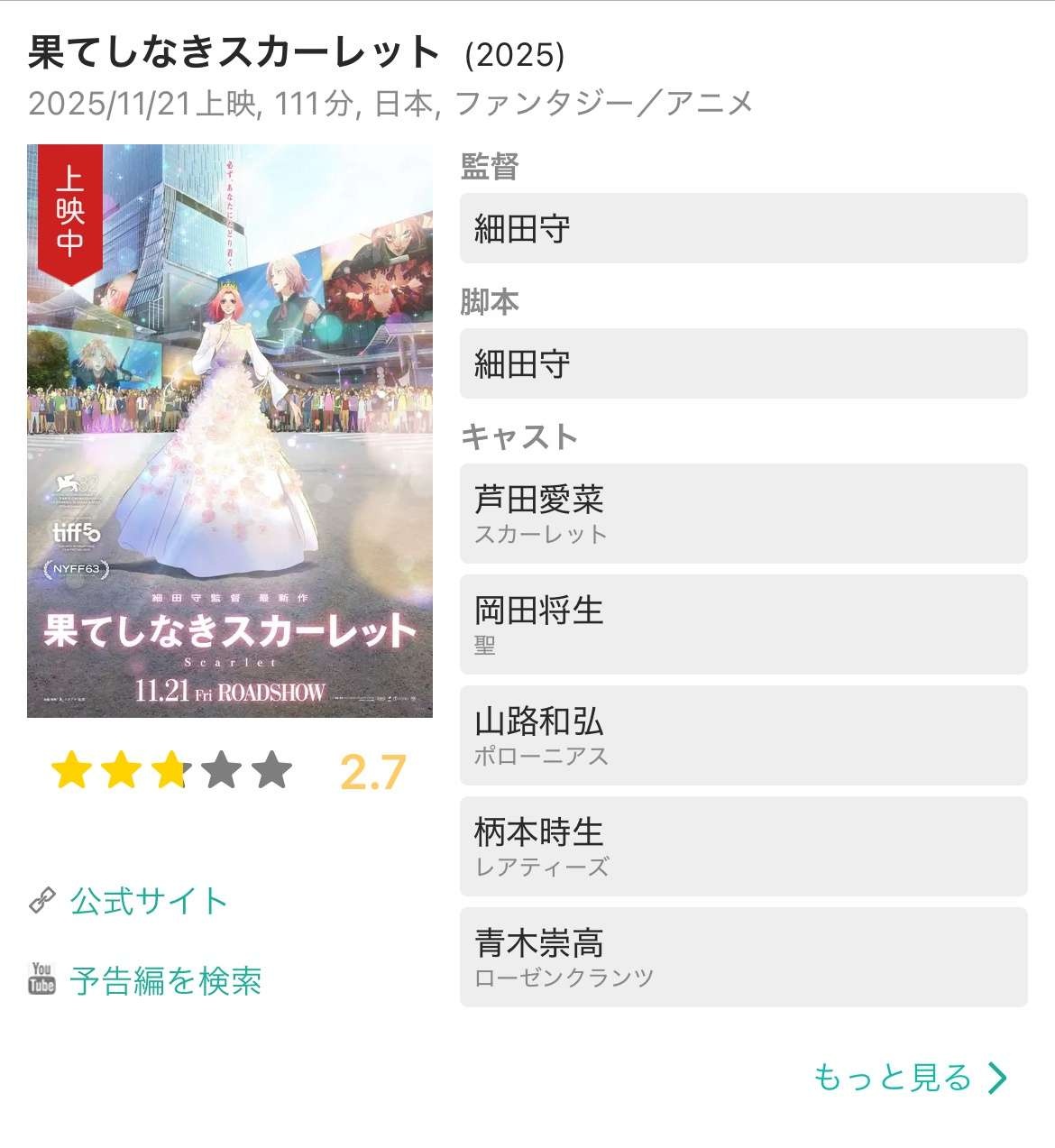 *2 *29556(+***8) 742654(.977) ****** 69.1% ****** 果てしなきスカーレット - 6 : 2025/11/22(土) 11:21:36.943 ID:Y/rlz/bZi