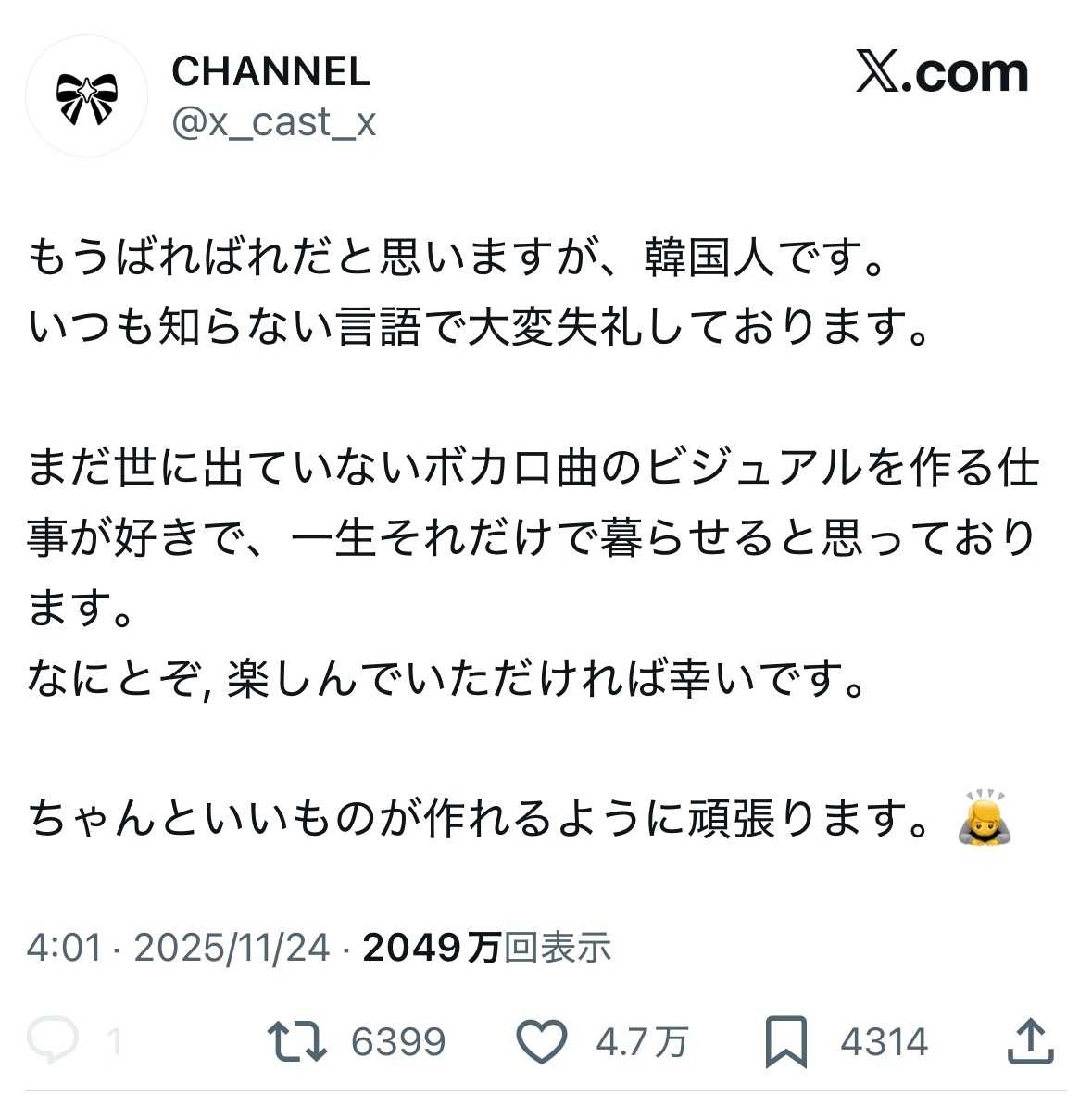 メズマライザー絵師のchannel、韓国人🇰🇷だった