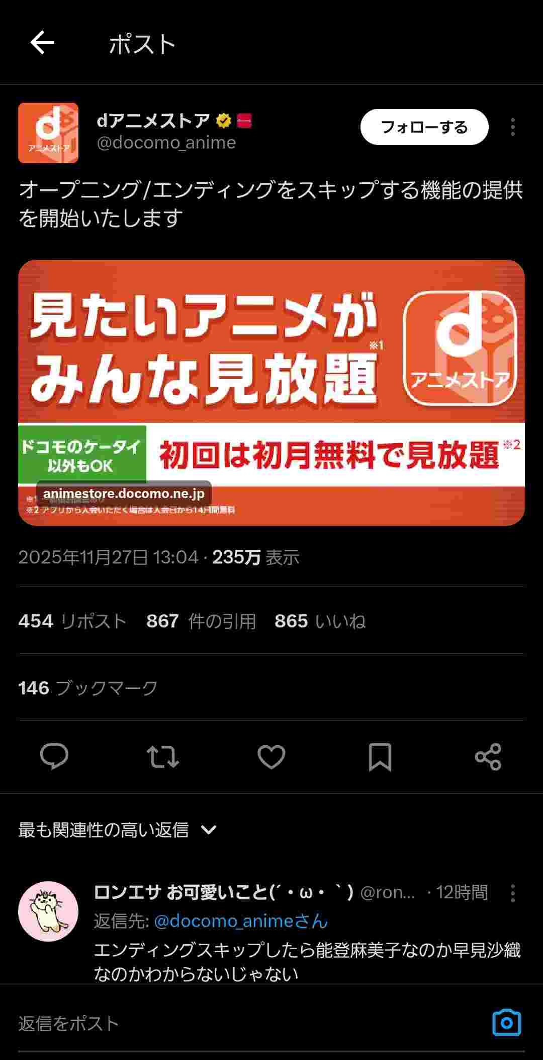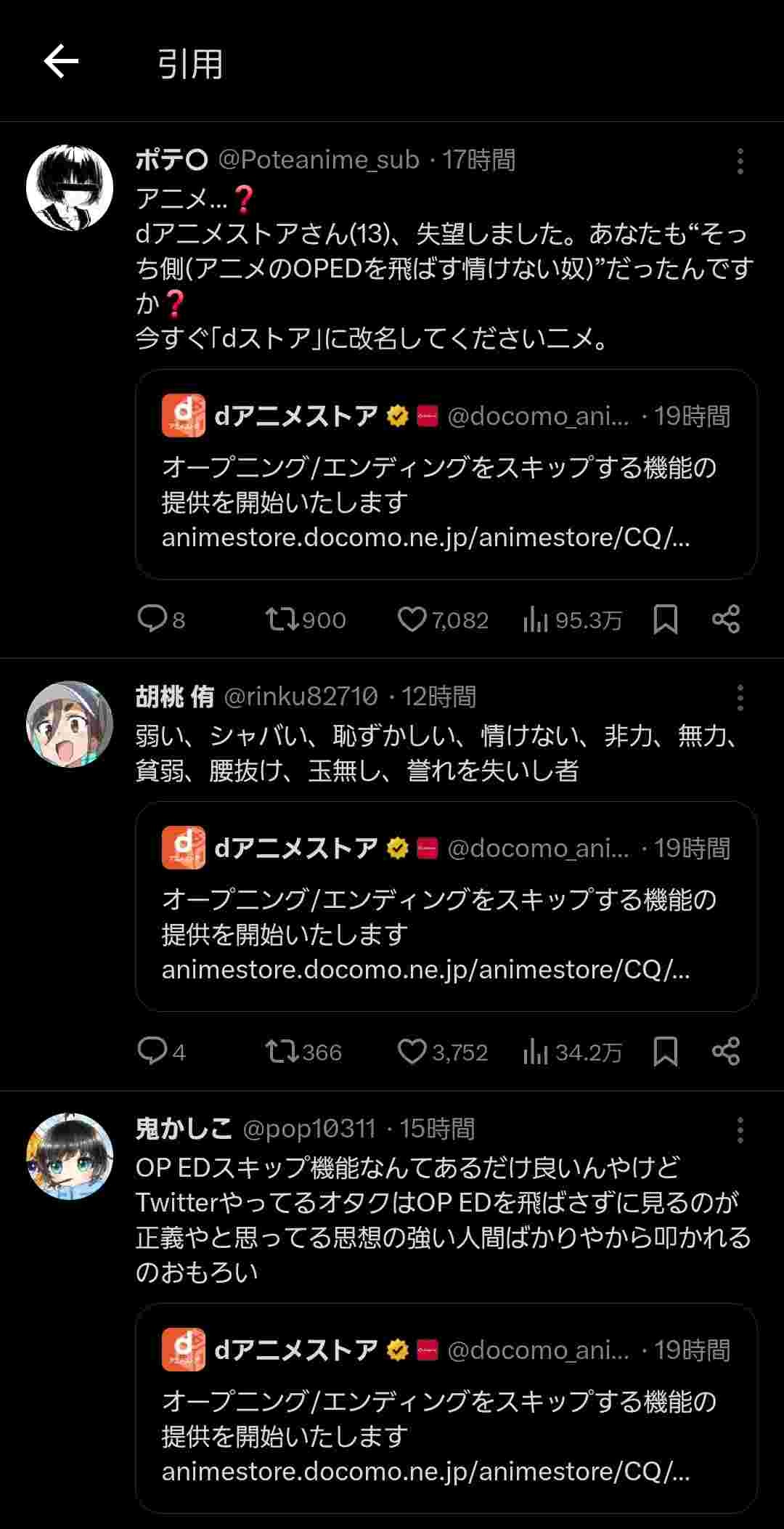 dアニメストア、OPスキップ機能を付けただけで炎上www