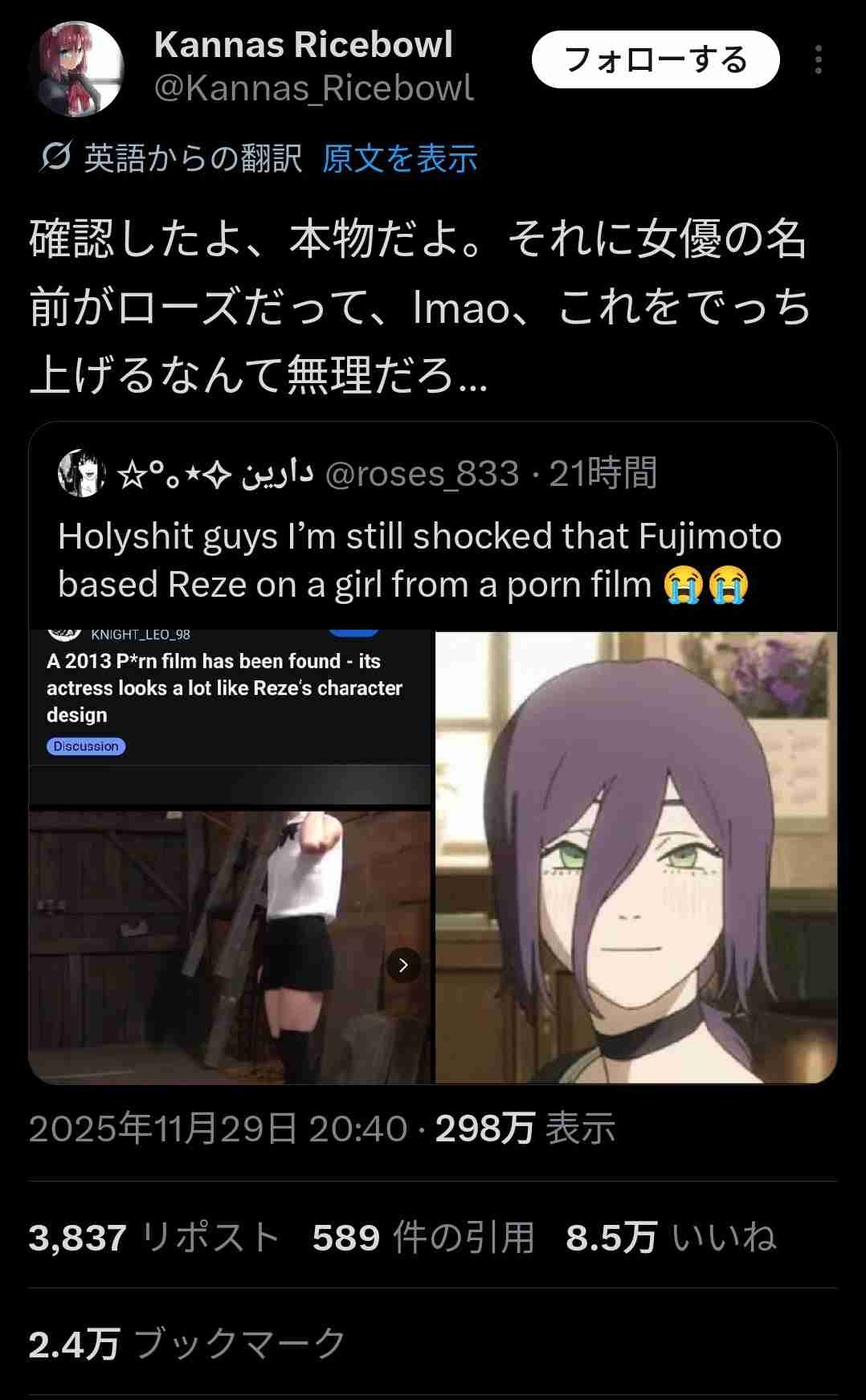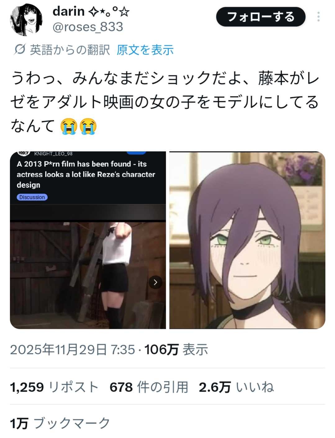 13年前の海外ハードSMのアダビデがレゼのモチーフとバレる - 3 : 2025/11/30(日) 17:01:56.710 ID:nxVmUHOxj