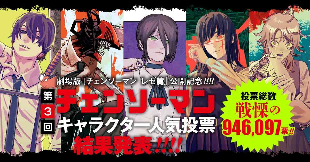 チェンソーマン2部最新人気投票、1位レゼ2位マキマ3位アキwww