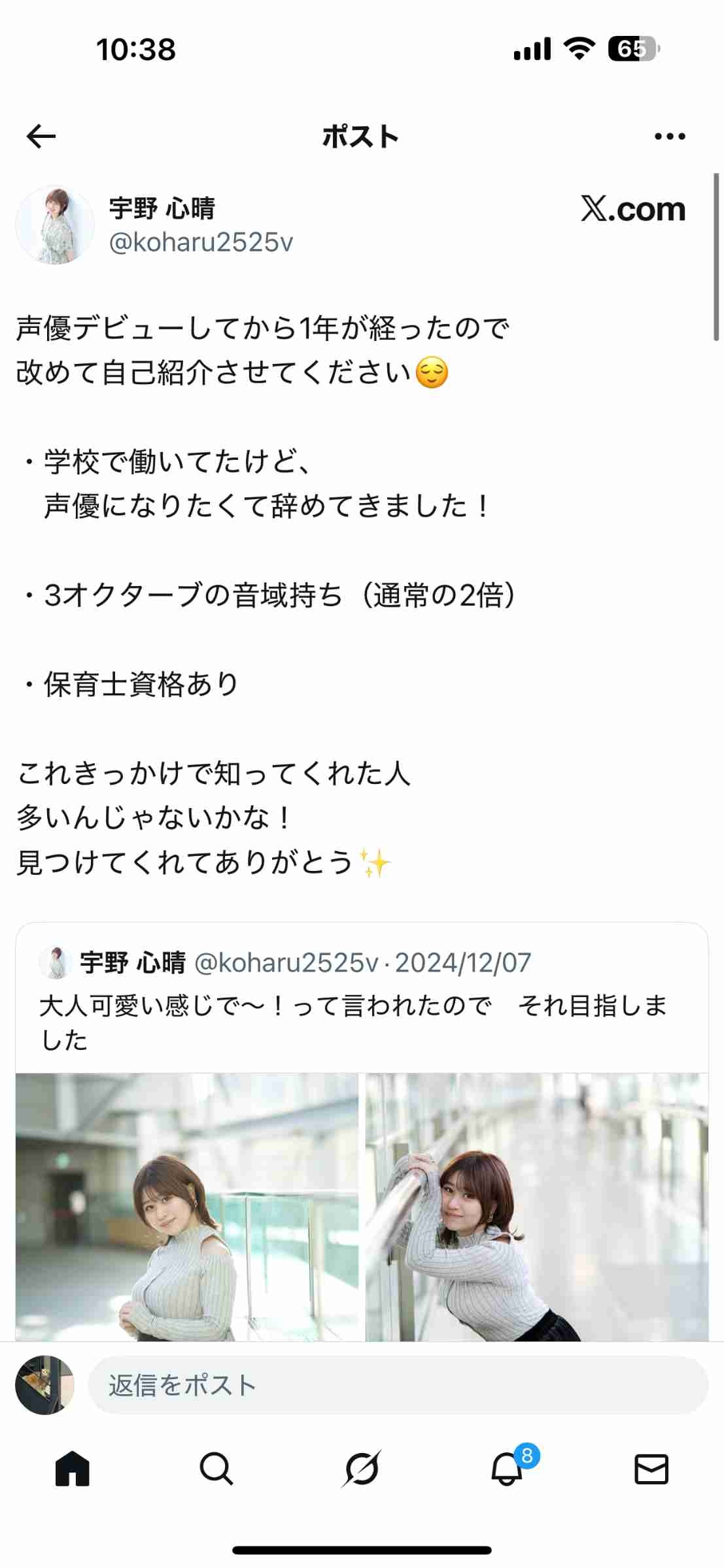 声と芝居をいいねって思ってもらえるのが1番嬉しかったりする宇野です