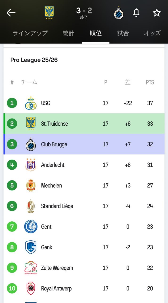 - この2クラブが上位って10年前のベルギー人も信じれんやろ