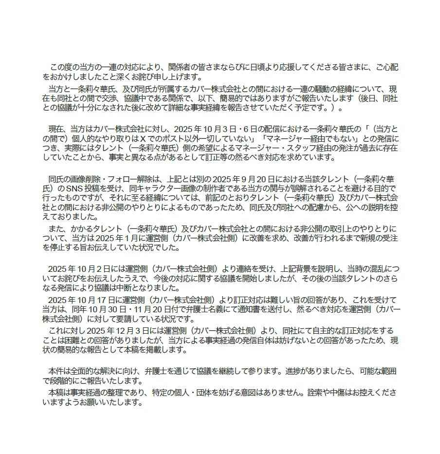 画像削除・フォロー解除の経緯と、カバー社との協議状況のご報告