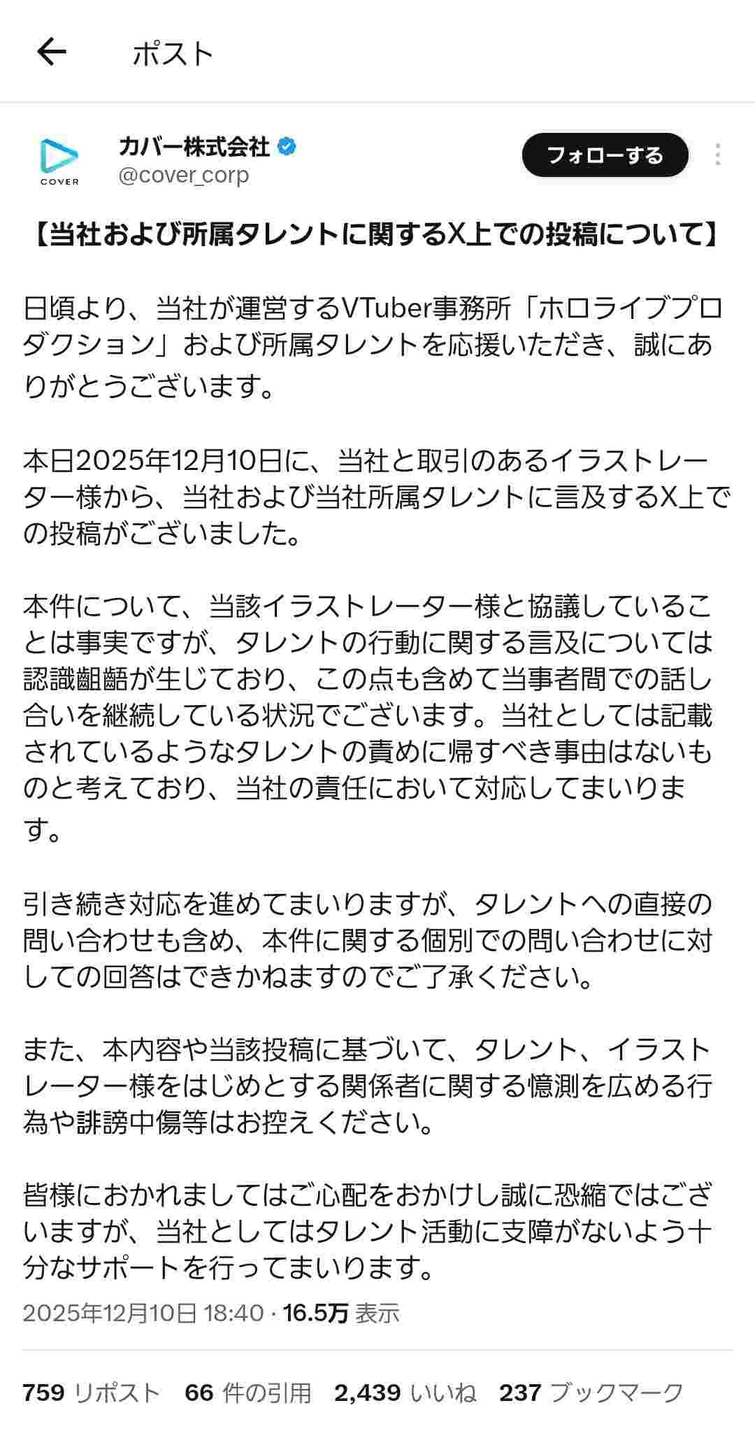 ホロライブ絵師ブチ切れでカバーと全面戦争突入へ