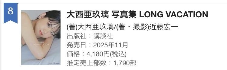 *1,790 大西亜玖璃 LONG VACATION (25/11/28)※水着 ←NEW!