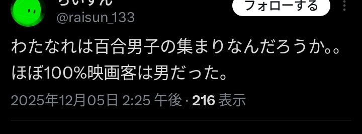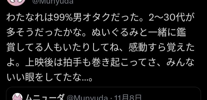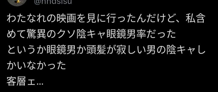 - 映画行ったら終わったあと後ろのオタク女子がギャーギャー騒いでて女も見るんだこれと思った