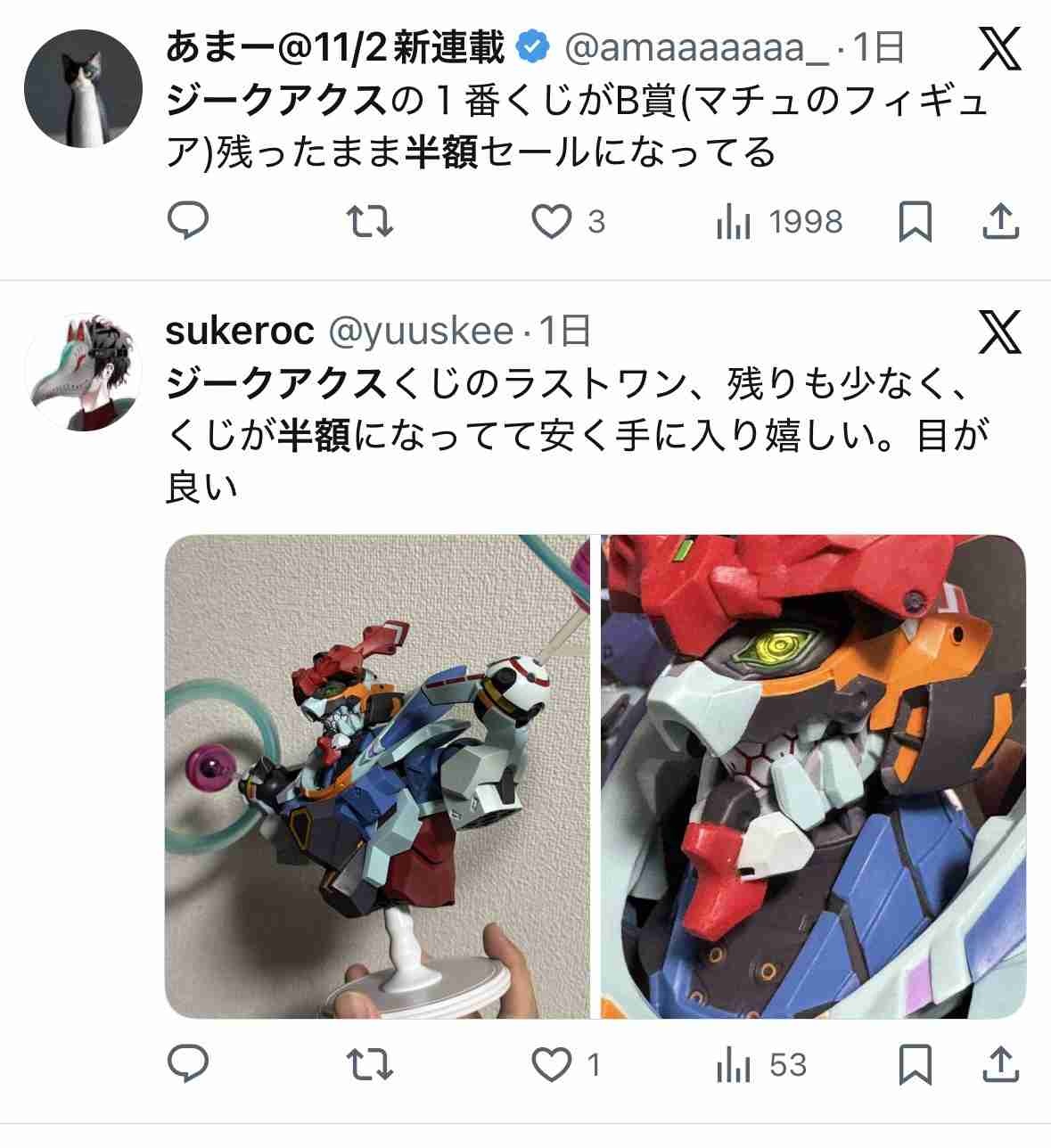 - 同じ系統の水星の魔女はまだグッズは売れてたけど?ジークアクスはほんま不人気やな