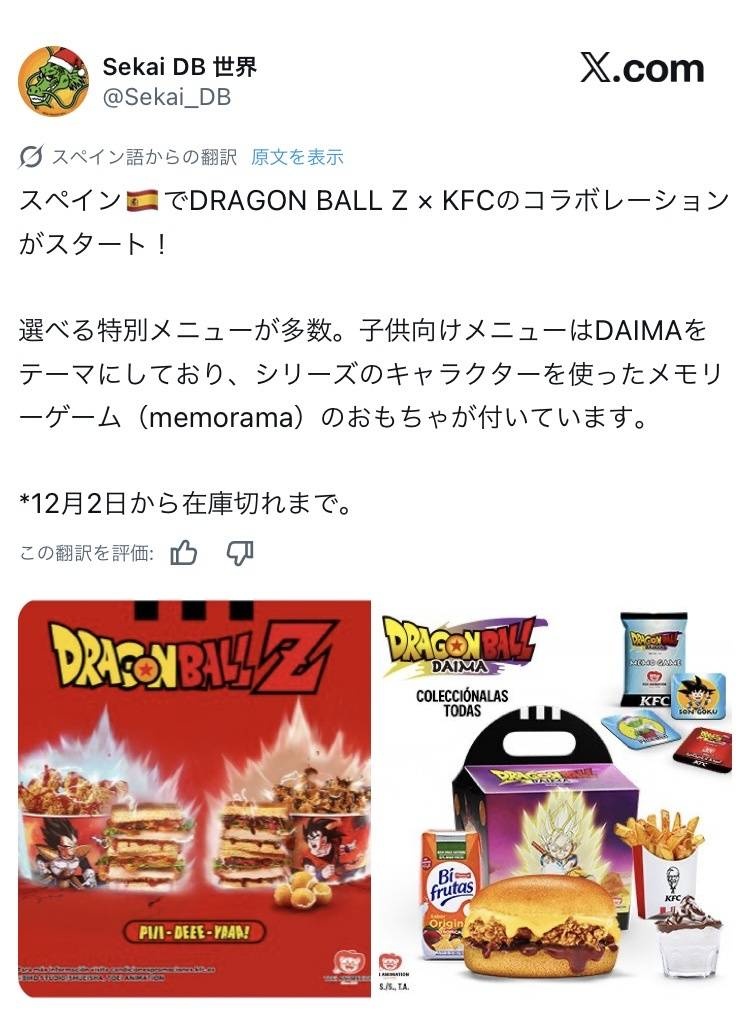 ケンタッキー公式、世界各国でドラゴンボールとコラボwww