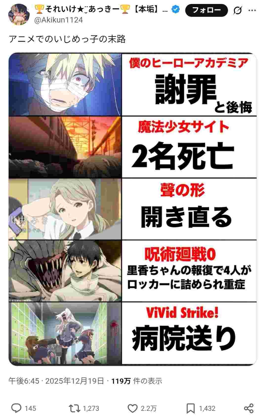 【画像】「アニメでのいじめっ子の末路」バズりまくるwww