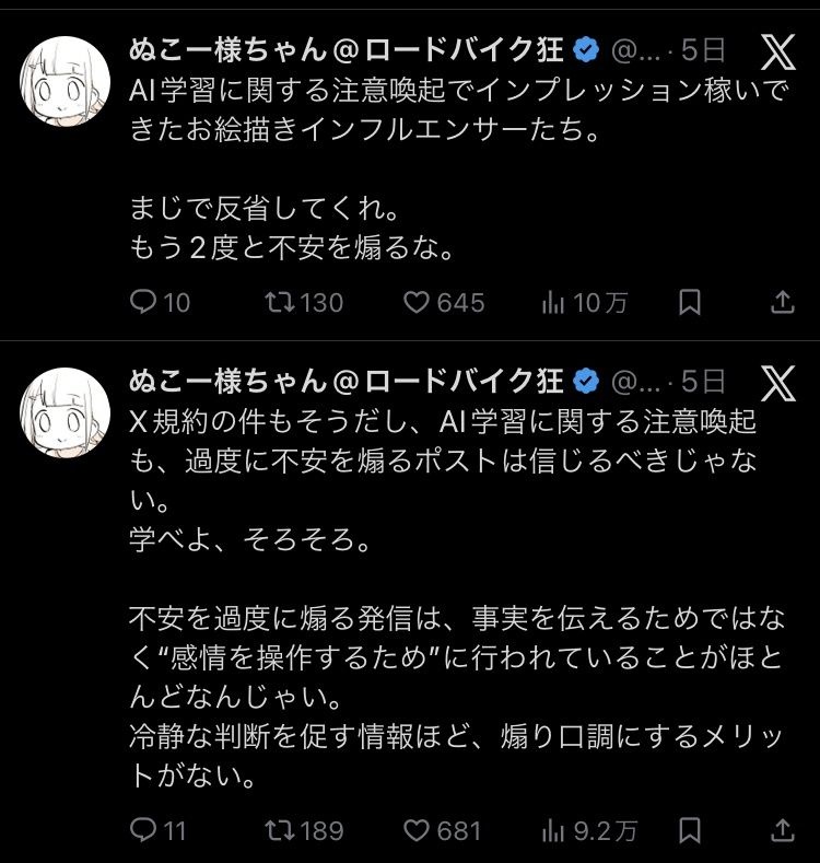 - 他のSNS行ったところでAIに学習されないとでも思っとるんかなぁ