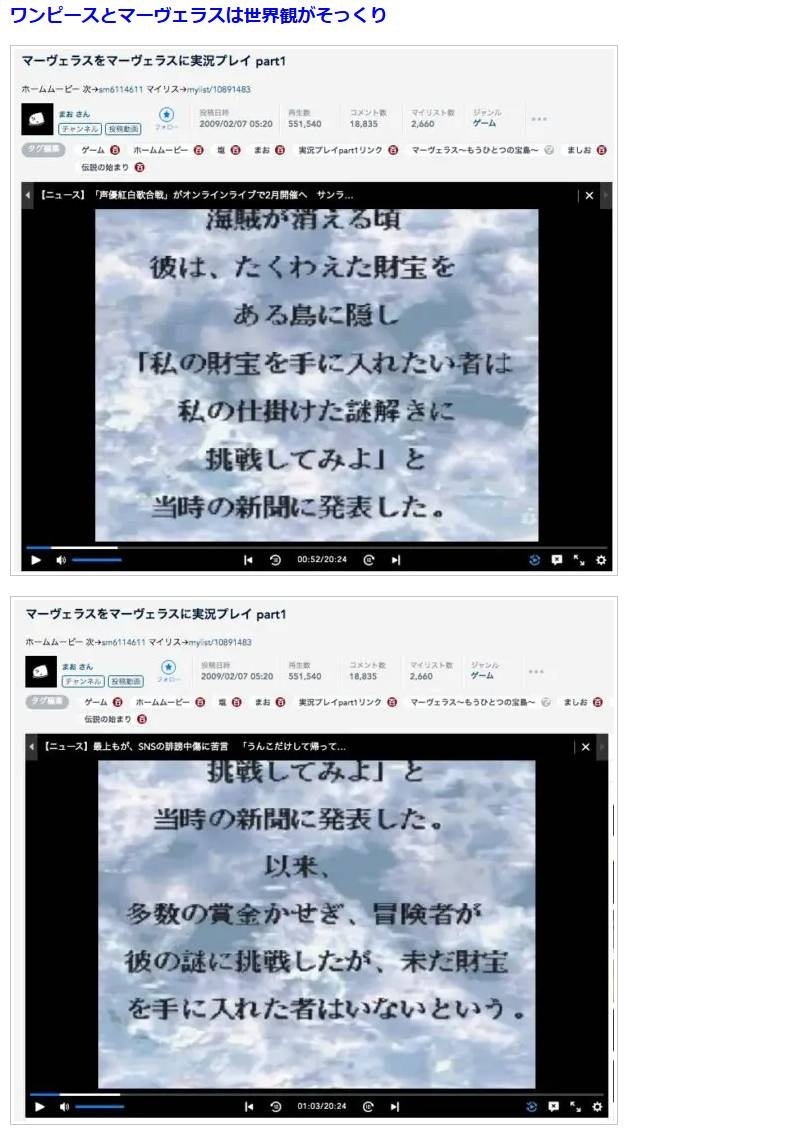 - ワンピースの元ネタの任天堂のゲーム「マーヴェラス」では