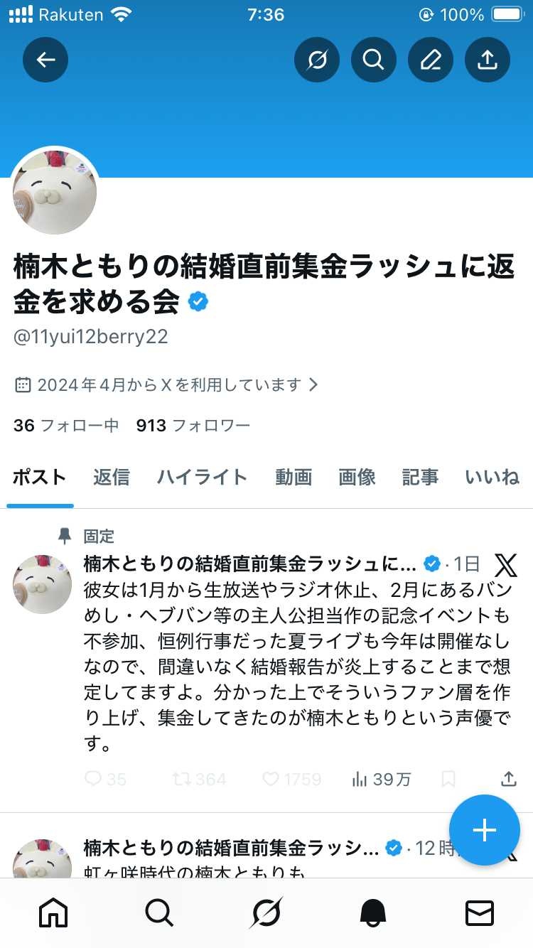 アーティスト活動を長く続けたいという目標を裏切ったかららしい楠木ともりの結婚直前集金ラッシュに返金を求める会