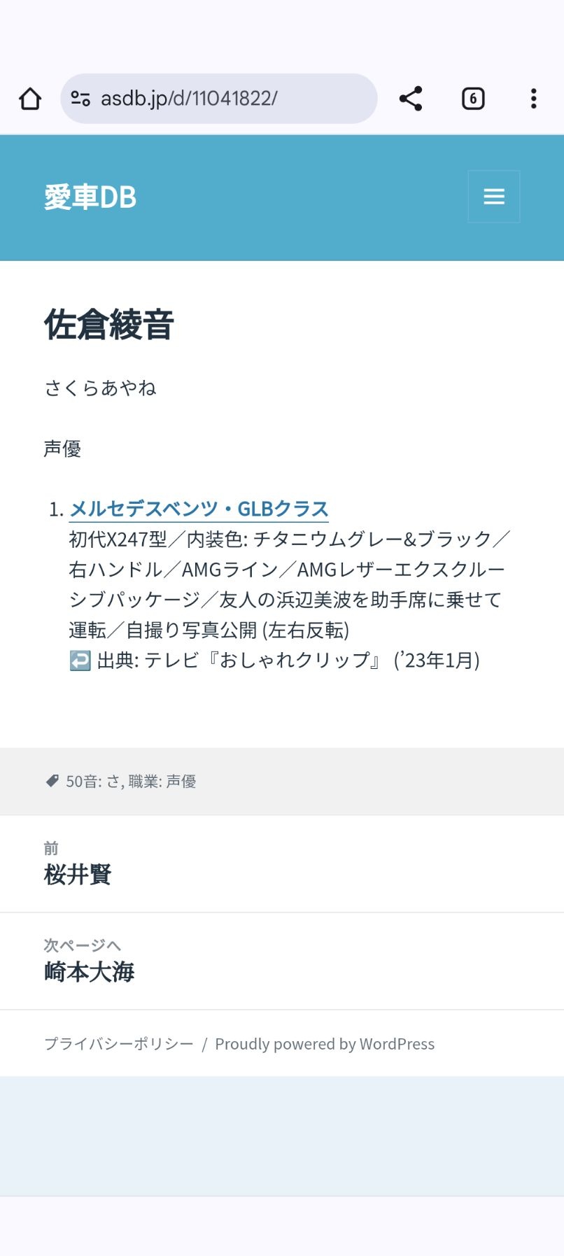 人気声優の佐倉綾音さん、愛車としてメルセデスベンツGLBクラスを乗り回す🚙www