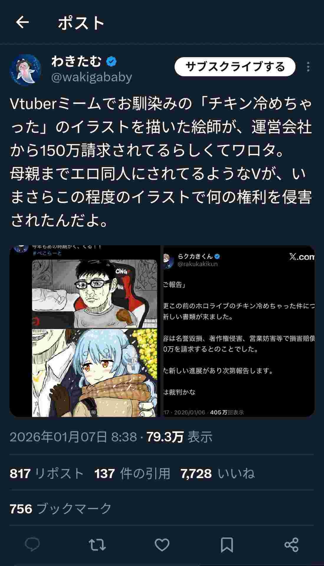 それで「これが訴えられたんです~」ってアピールのためのダミーでこっちだけ消さずに残してるとか - 23 : 2026/01/07(水) 12:25:08.927 ID:u0c34LD5C