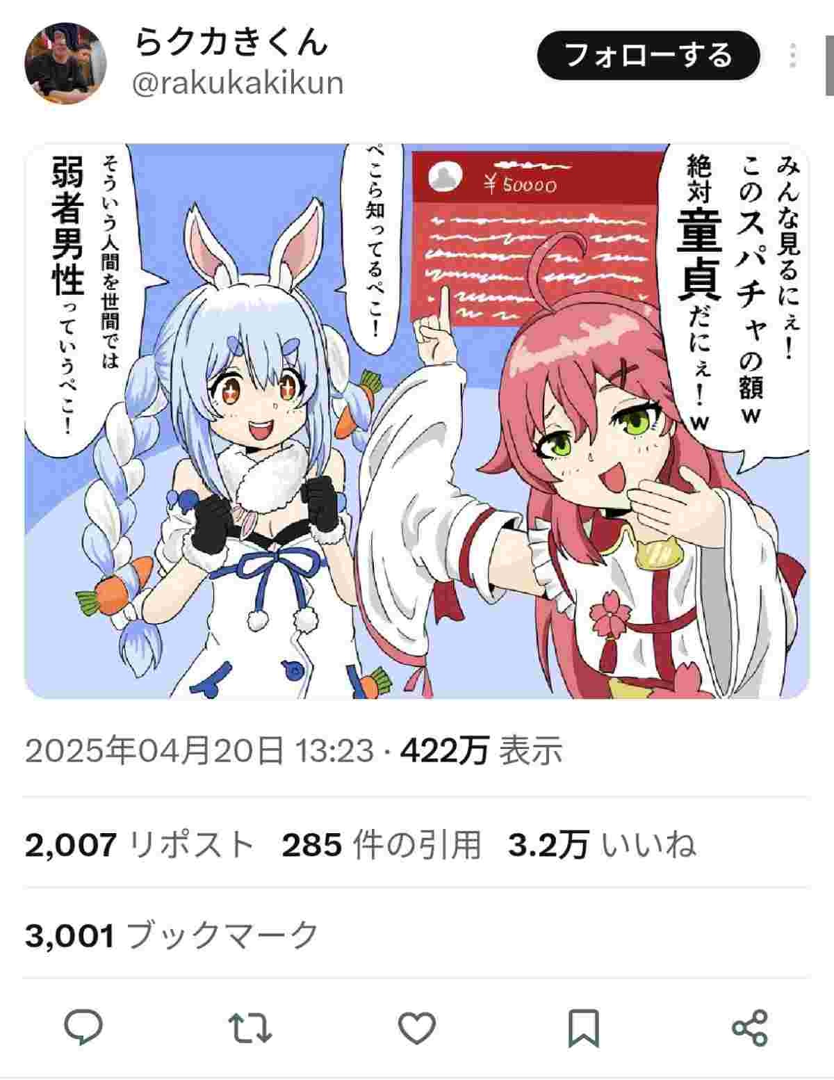 ぺこーらチキン冷めちゃったの絵師、名誉毀損で運営から150万請求www
