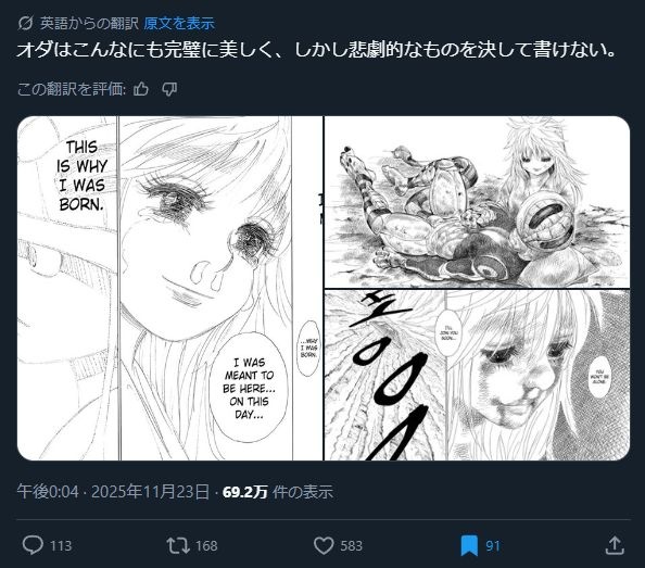 外人「尾田栄一郎はハンターハンターのような完璧で美しい物語は描けない」
