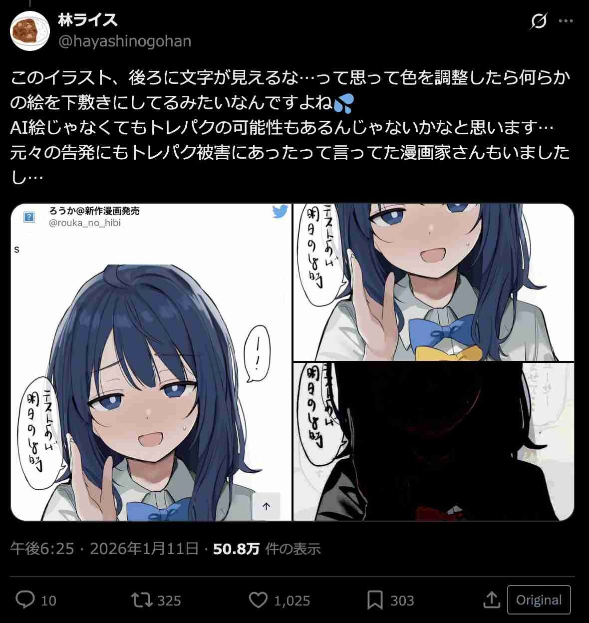 - 以前も反AIやってる奴がAI絵トレスバレしてたし