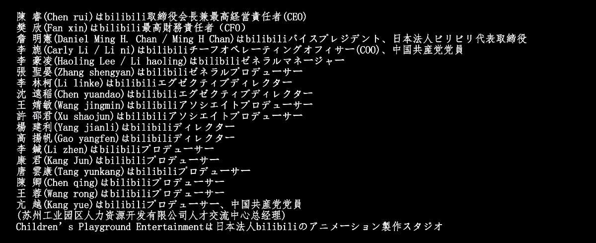 https://ja.wikipedia.org/wiki/Bilibili中国共産党党員が制作に関与したアニメ一覧