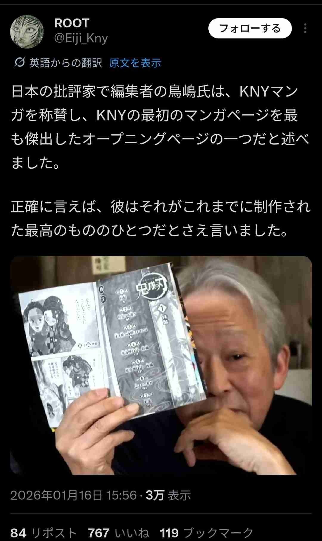 鬼滅の1話をベタ褒めしてた