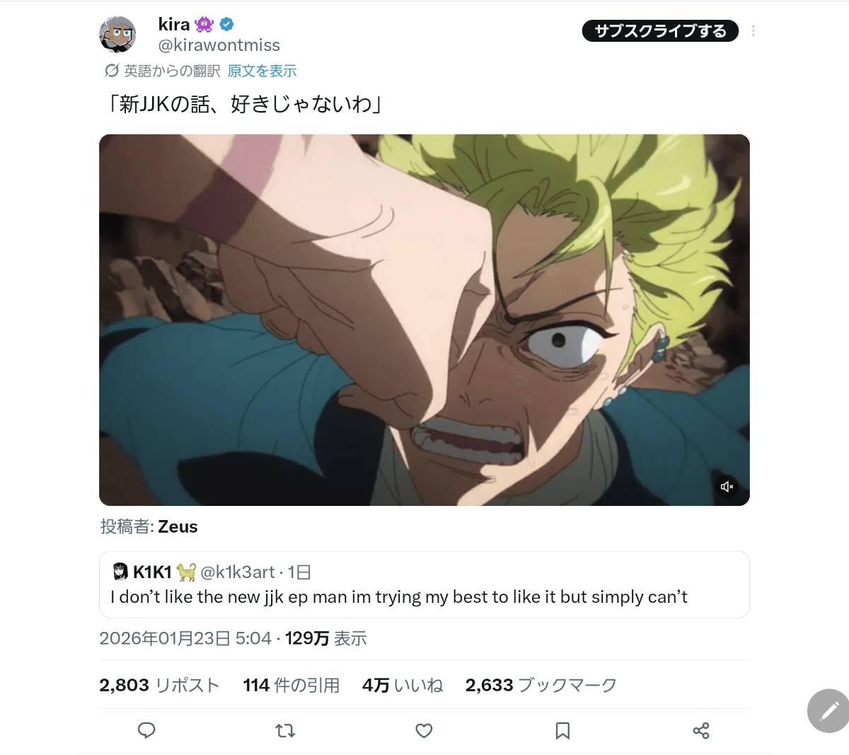 呪術廻戦を批判した日本人男たち、海外アニメファンからぶっ叩かれるwww