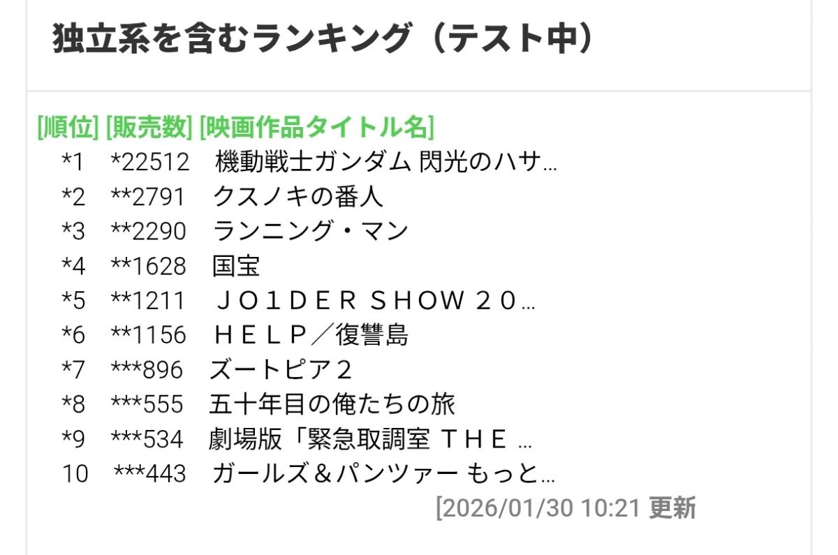 普通のエンタメで勝負しないと売上は出んやろな - 24 : 2026/01/30(金) 10:40:41.411 ID:KLgrdwInJ