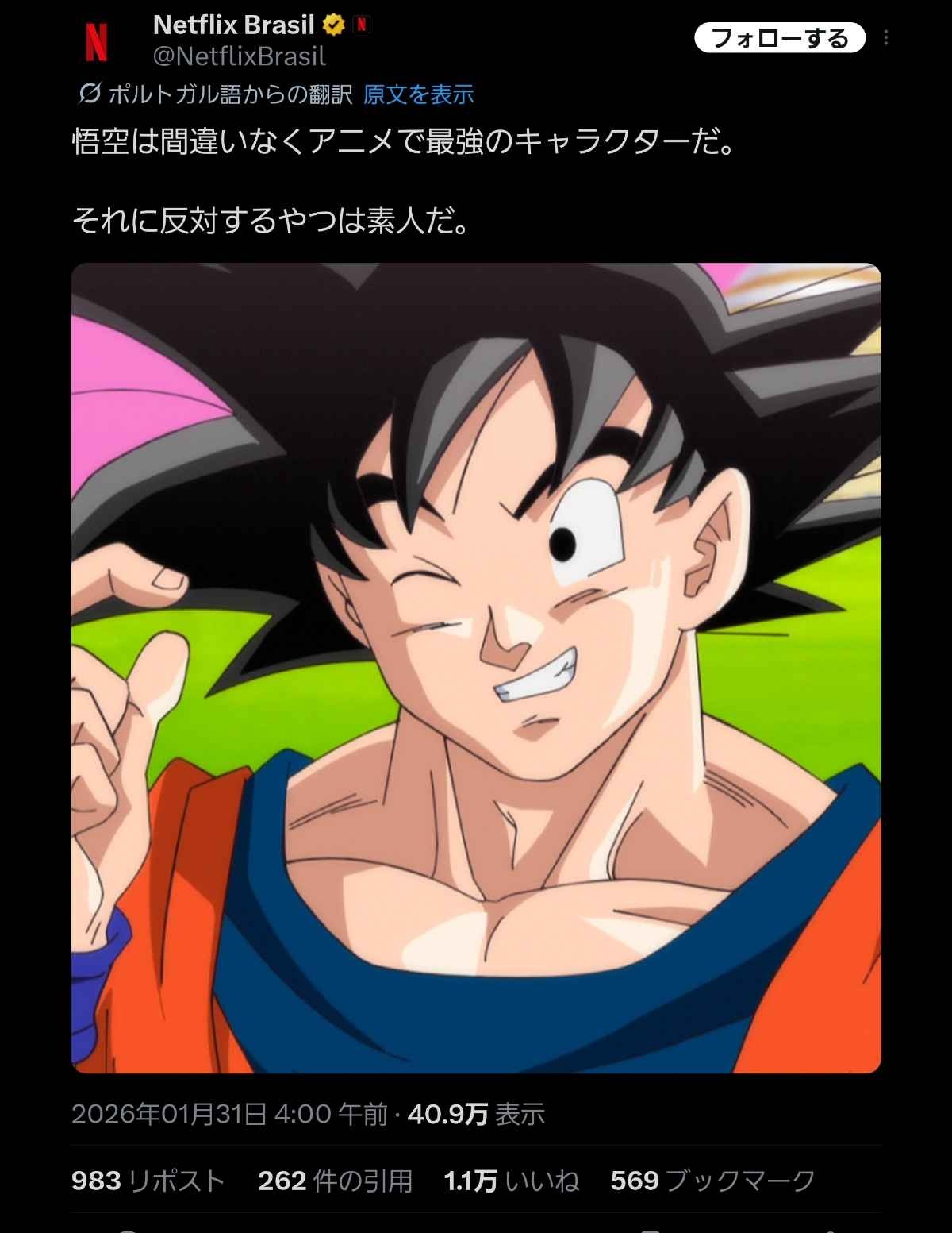 Netflix「悟空は間違いなくアニメで最強のキャラクターだ。それに反対する奴は素人だ。」