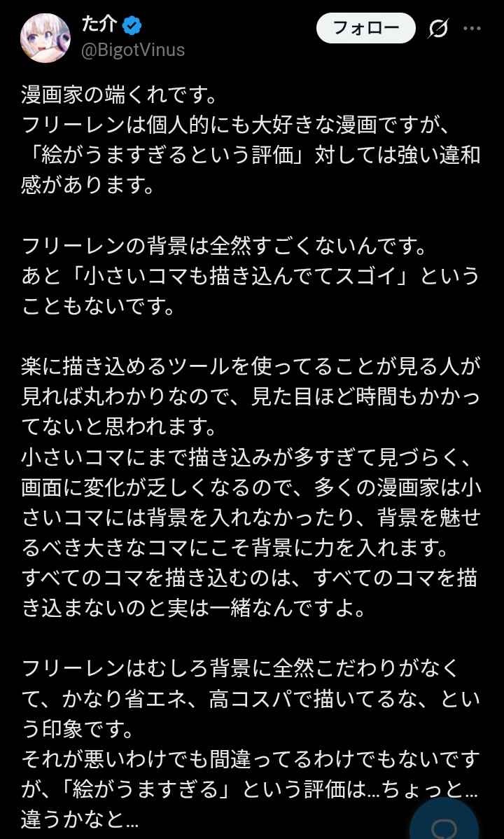 - こんな長文で批判したくなるほどフリーレンの絵って絶賛されてたっけ