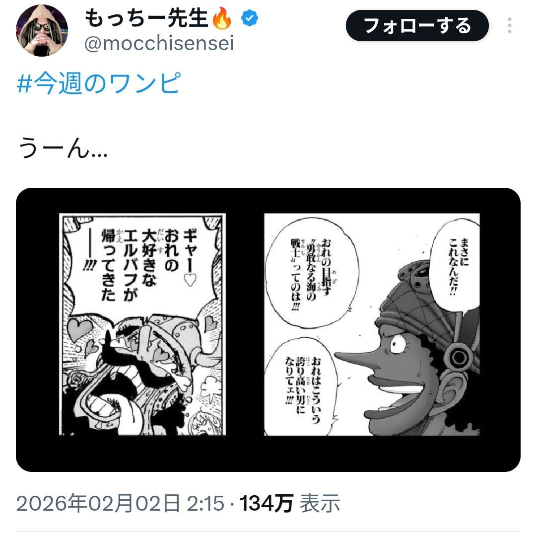 ワンピース、ウソップの発言が軽薄すぎるという批判ポストが134万インプレッション