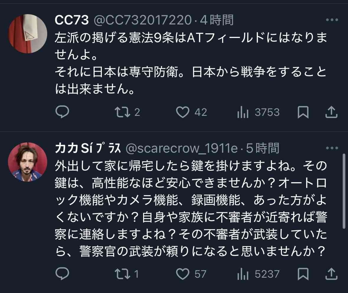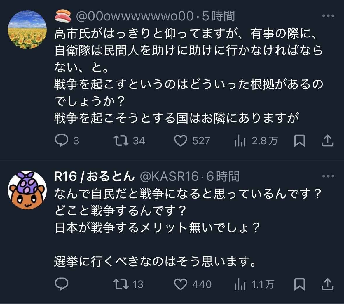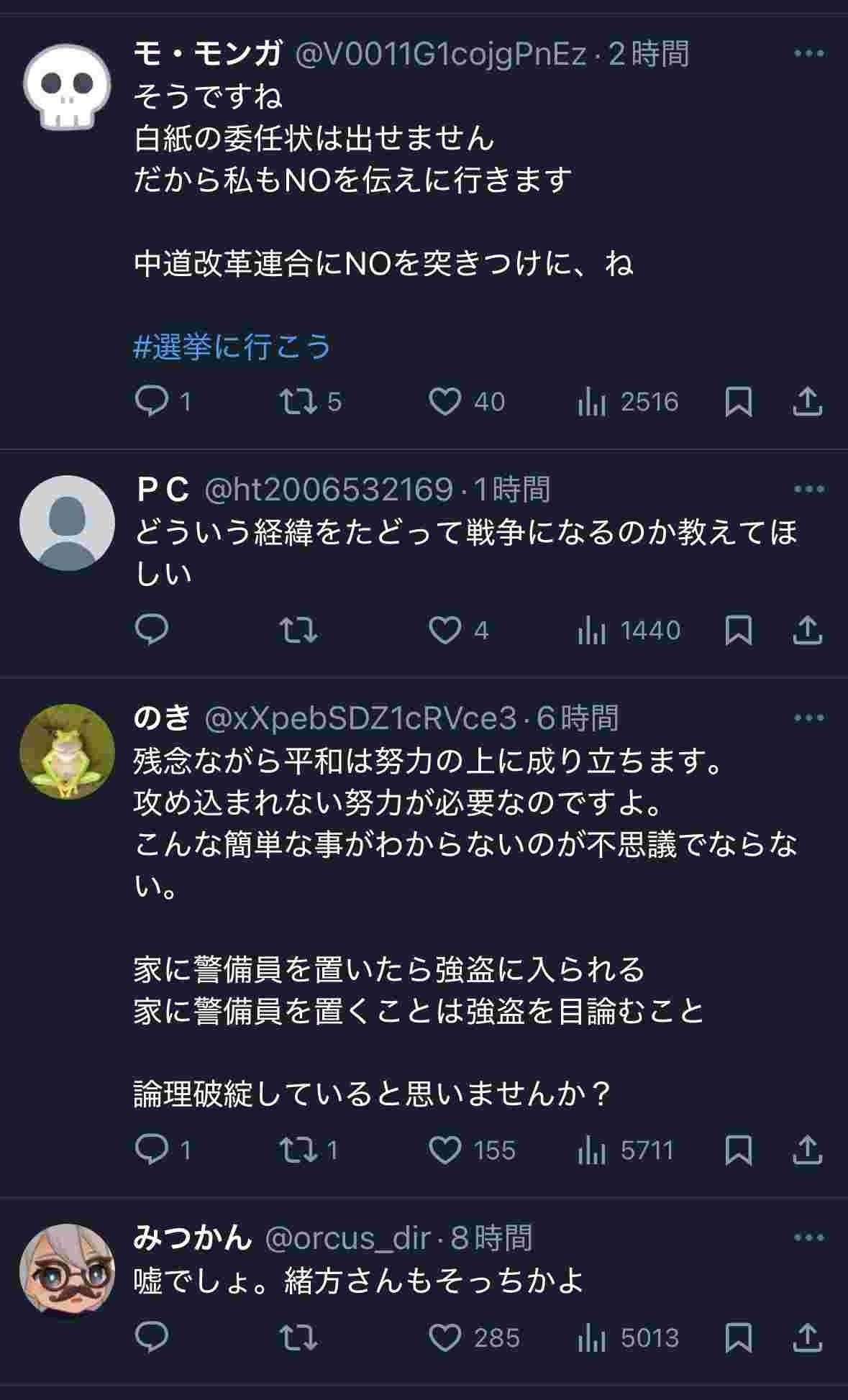 - 戦争はしないさせないって言ってることに発狂するやつのがやばいだろ