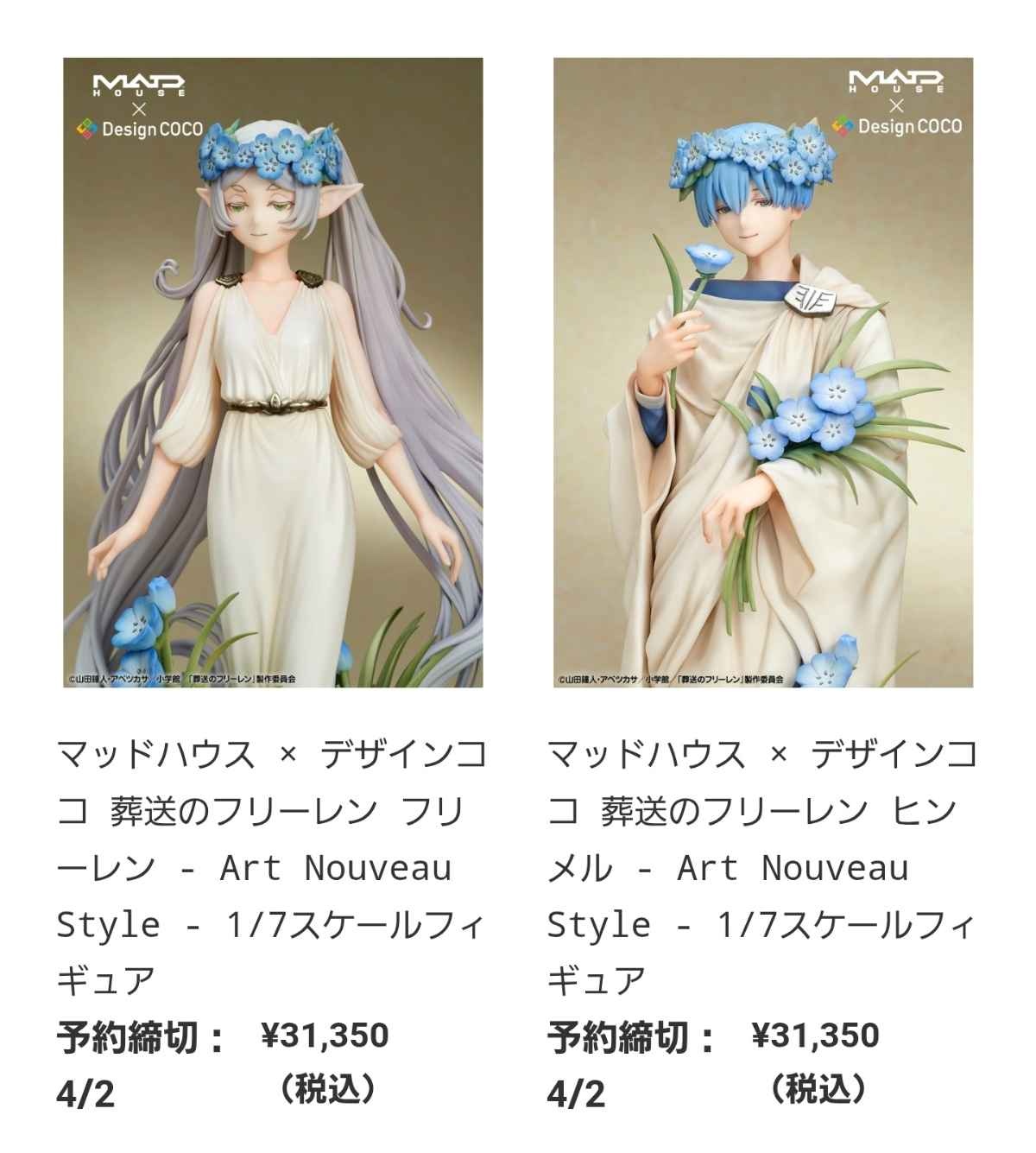 商品名:マッドハウス × デザインココ 葬送のフリーレン フリーレン&ヒンメル – Art Nouveau Style – 1/7スケールフィギュア
