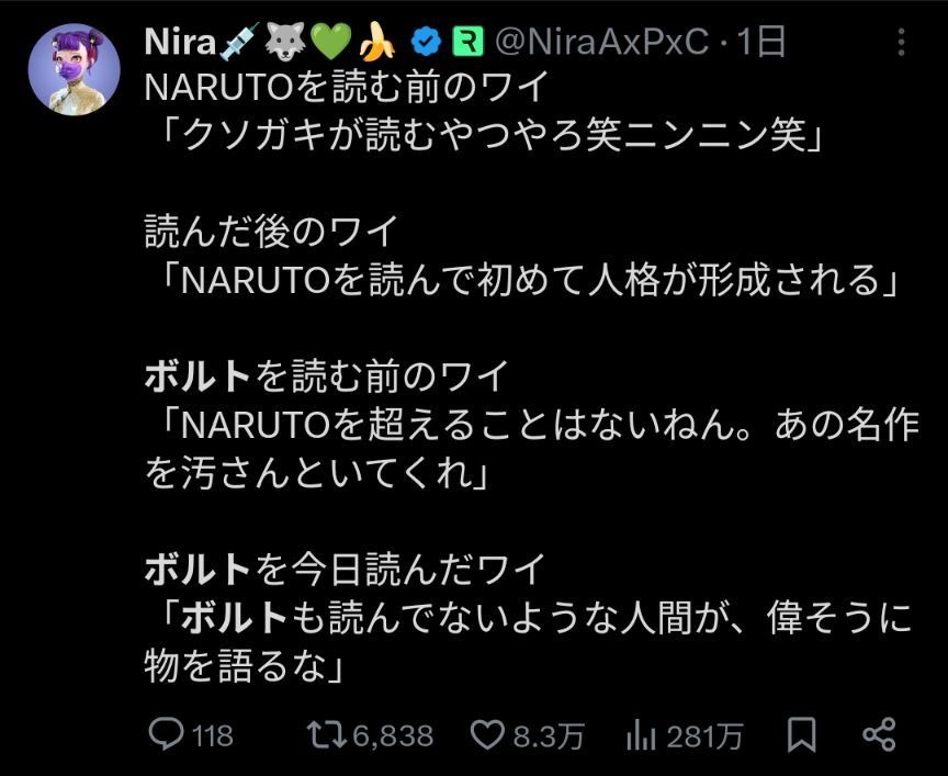 - BORUTOが世界の敵になったタイミングでバズるならいいよ?