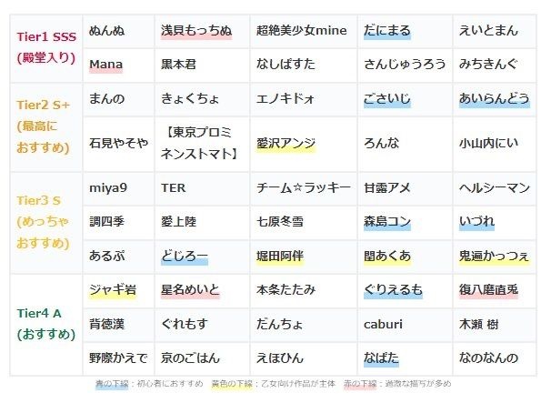 有識者によるエ口漫画家Tier表、ついにかんせい